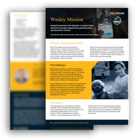Tech for Good enhanced Wesley Mission’s Dynamics 365 CRM to streamline call center requests, case management, and emergency cash assistance—helping people impacted by gambling harm and domestic violence access support faster. Download the case study to learn more.